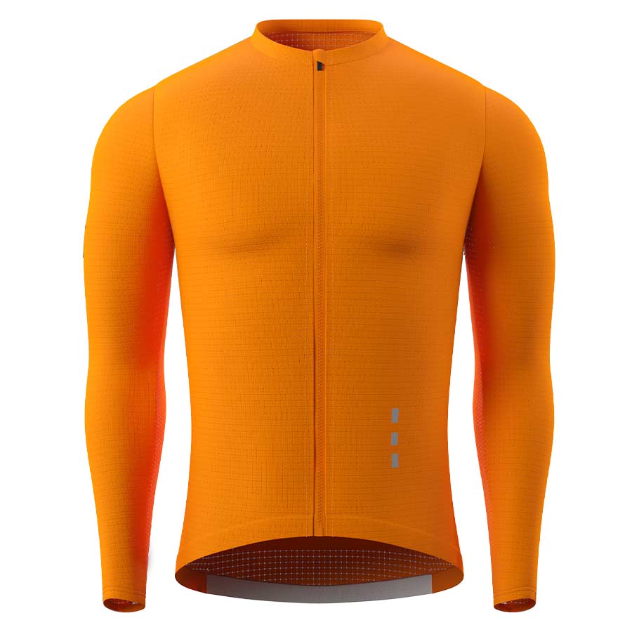 Home / Designer's / Designer - Top / Mens LS Jersey CL1201 / Souke Men’s Long Sleeve Cycling Jersey with 3 Rear Pockets, Race Cut and Light Weight, zip pocket added – CL1201 – Orange